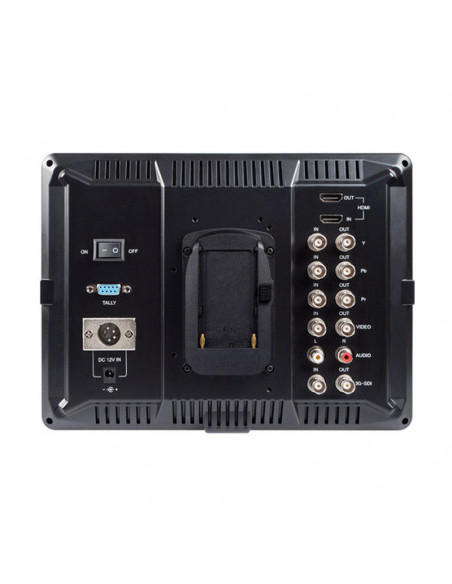 The Feelworld monitor has HDMI, SDI, composite and component video inputs and outputs, RCA audio inputs, a tally input, a headphone jack and a speaker.