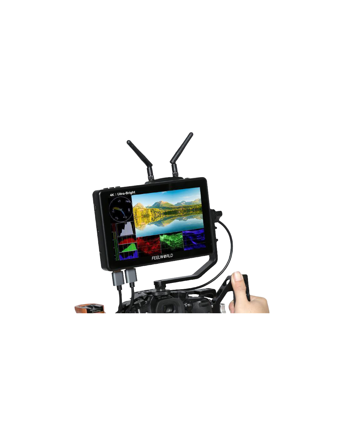 Ideel til filmhold, instruktør, AC og DP-monitoreringNem monitorering og fokus. Fleksibel mobilitet på sættetMonitoren giver filmproducenter fordelene ved en stor kameramonteret skærm, uden at kameraopsætningen føles besværlig. Den er pakket med de bedste monitoreringsfunktioner i en lille, let pakke der kan tilsluttes stort set alle kameraer. På forsiden er der en stor LCD-berøringsskærm i høj opløsning, der kan ses i dagslys. Der er videostik i bunden og en holder til SD-kort på siden. Der er en batteriplade til F970-batterier og plads til at installere f.eks. en trådløs transmitter, LED-lys og andet udstyr med en batteriplade til Sony F970. Den ydre ramme har standardmonteringspunkter på 1/4" i bunden og på begge sider, så monitoren kan monteres på kameraer og rigge. Denne designdetalje gør det nemt at fastgøre monitoren til et kamera og dele med en kollega eller klient på sættet.Nem at se. Nem at strømforsyneDet ideelle valg for instruktørenOfte ved du ikke altid, hvor du skal placere monitoren, når du gerne vil bruge trådløs videotransmission. LUT7 PRO kommer med en F970-batteriplade og et sæt til installation af eksternt udstyr og strøm, der ikke bare løser problemet, men som også kan strømforsynes med Sonys F970-batteri. Det vigtigste er, at det gør det nemt for instruktøren og fotografen at kombinere monitoren og trådløs transmission med henblik på monitorering og øger effektiviteten i filmholdets arbejde.Høj opløsning. Flere detaljer i optagelser i markenTil klar visning og optagelse af alle detaljerMonitoren gør det muligt at monitorere klart og præcist i marken og analysere billeder i optagelser i dagslys. Skærmen på 7" og en maksimal opløsning på 1920x1200 kan vise dine stillbilleder og monitoreringsindhold med uovertruffen farveægthed. Panelet består af optisk limet glas med en antirefleksbelægning, der gør monitorering i marken i dagslys nem. Men det der virkelig adskiller monitoren fra andre monitorer, er baggrundslyset med lysdioder (LED) med en lysstyrke på 2.200 nits, et kontrastforhold på 1.200:1 og et sRGB-/Rec.709-farveområde, der giver en helt usædvanlig klar skærm også under intense lysforhold. Du kan trygt filme i fuldt dagslys og finjustere dit indhold på stedet med skærmen, der viser dine optagelser med 323 ppi. Den brede betragtningsvinkel på 160º gør det let for flere på holdet at se på skærmen på samme tid.Ultra lysstærk. 2.200 nits. Kan ses i dagslysIntet behov for solskærmMonitoren på 7" med en opløsning på 1920x1200 har ikke bare en opløsning og pixeltæthed, der får alle optagelser til at se fantastiske ud, men skærmens lysstyrke på 2.200 nits er næsten fire gange højere end konventionelle monitorer og giver dig mulighed for filme udendørs, uden at refleksioner udvasker dit billede. Det gør det let at se billeder udendørs uden en solskærm og filme udendørs i stærkt dagslys!Lyssensor til automatisk dæmpningMonitoren har en sensor til omgivende lys, der registrerer lysniveauet i omgivelserne og automatisk justerer skærmens lysstyrke. Det sikrer, at skærmen kan læses i forskellige miljøer, og at dine øjne altid er beskyttede. En forøgelse af skærmens lysstyrke kompenserer for kraftigt sollys, når monitoren bruges udendørs, mens en dæmpet skærm er mere behagelig for øjnene, når den bruges i mørke.Stor monitor med brugervenlig berøringsstyringEnkelt og nemt. Gør dit filmarbejde mere effektivtBrugergrænsefladen på den innovative LCD-berøringsskærm gør styringen nem. Du kan bruge simple trykke- og strygebevægelser til de vigtigste monitorfunktioner. Optagelserne kan aktiveres via berøringsskærmen, og det samme gælder hjælp til fokus og eksponering. Der er også en lang række indstillinger, der alle kontrolleres via den store LCD-skærm. Og så kan du indlæse 3D LUTs!Understøtter berøringsskærm og kontrolmenu med knapperDu kan også få et hurtigt overblik over dine menuindstillinger og funktioner med et let tryk på skærmen. Fysiske kontrolknapper understøttes også. Tryk på/drej hjulet for hurtigt valg og indstillinger for funktioner. Tryk på strømkontakten for at deaktivere berøringsfunktionen, hvis du vil undgå misbrug.Betjeningsvejledning til berøringsskærmKlik to gange på skærmen for at åbne hovedmenuen, mens skærmen er tændt, og berøringsfunktionen er aktiveret.Åbn genvejsmenuen ved at stryge opad fra bunden af skærmen, og klik på en tilsvarende menu for at åbne eller indstille den tilsvarende funktion. Dobbeltklik på funktionen til genvejsmenuen, og vælg funktionsindstilling med knappen "<" eller ">". Du kan justere lysstyrken for skærmens baggrundslys i venstre side af skærmen (skærm opdelt i to) og lydstyrken i højre side af skærmen (skærm opdelt i to).Klik et vilkårligt sted uden for menuen for at afslutte menuen.Ægte farver. Professionel farvekalibreringBruger farvestandarden Rec.709FEELWORLD bruger den professionelle farvestandard Rec.709 HD og bruger farvekalibreringsteknologi. Ved hjælp af den professionelle instrumentkalibrering fra fabrikken opnås den mest effektive monitorkalibrering, så de præcise farvegengivelser rammes let, farverne ikke forvrænges og det rigtige billede vises, når du optager video.Præcis farvegengivelseFEELWORLD-monitoren understøtter standarderne ITU og Rec.709 for HD-video med et konsekvent farverum og avanceret billedbehandlingsteknologi, så billederne vises klart. Farverne er ekstremt naturlige og sikrer så præcis farvegengivelse som muligt for at gengive de faktiske optagelser, som så igen giver brugeren mulighed for præcist at evaluere kvaliteten af de forskellige input fra videosignalerne.Innovativt design til montering af eksterne enheder og strømHold dit fotoudstyr enkeltBagsiden af monitoren har et design til Sonys F970-sæt til installation af eksternt udstyr og strøm. Det eksterne sæt kan bruges til at installere og strømforsyne eksternt udstyr, som f.eks