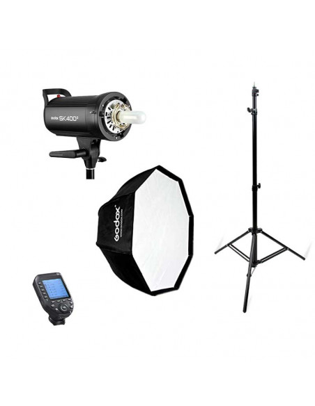Pakke med Godox SK400II, Victory lampestativ, Godox 95ø softboks og Godox Xpro II flashtrigger.