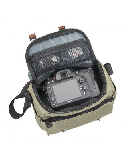 In addition to the main compartment, a zip pocket on the front and a mesh pocket on the top provide room for additional camera accessories such as filters and SD cards. On the sides, you&rsquo