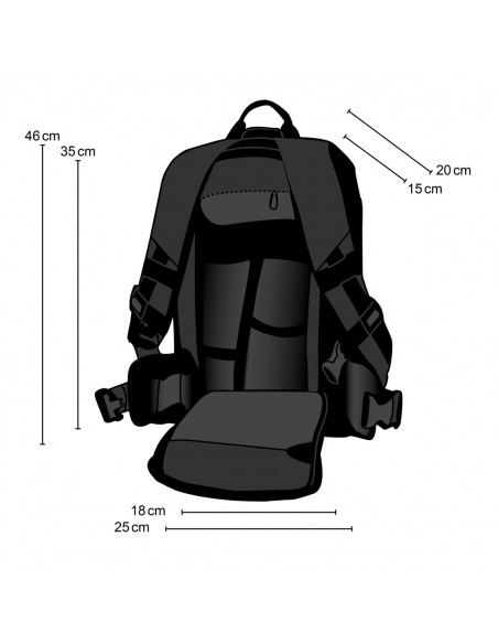 - Spacious interior: Outside measurements camera backpack 25 x 46 x 20 cm (LxHxD), compartment for camera inside measurements 35 x 18 x 15 cm. Made of tear-proof, durable nylon material. Thick padding yet lightweight.