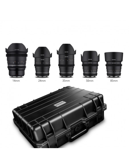 - Scope of delivery: 1x Samyang MF 14mm T3.1 VDSLR MK2, 1x Samyang MF 24mm T1.5 VDSLR MK2, 1x Samyang MF 35mm T1.5 VDSLR MK2, 1x Samyang MF 50mm T1.5 VDSLR MK2, 1x Samyang MF 85mm T1.5 VDSLR MK2