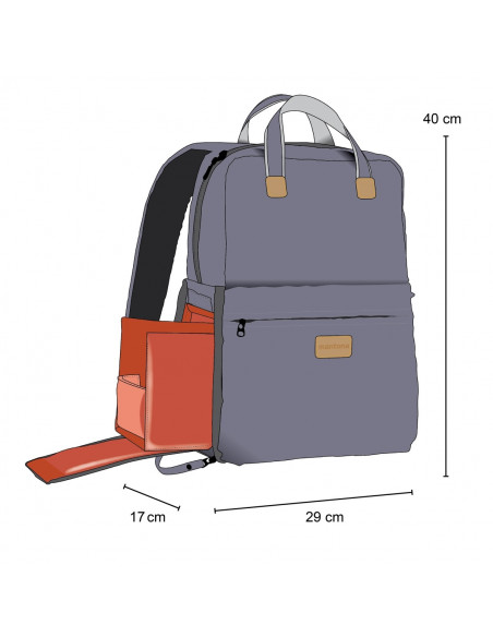 Photo backpack with real leather appliqué