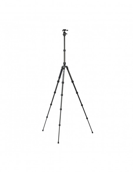 Fotopro X go Carbon E 2 Tripod with FPH 42QP ball head The Fotopro X go Carbon E 2 Tripod with FPH 42QP ball head has legs with 5 sections that are locked with a twist lock system. With the centre column extended, the tripod has a maximum working height of 150cm. Reversing the centre column allows a minimum working height of 34.6cm. The variable leg angles allow the tripod to adjust to uneven terrain. Highlights Lightweight and portable design Maximum working height of 150cm Adaptable to any surface Lightweight and portable design This tripod is made of high quality carbon fibre, contributing to its light weight of just 980g, while still offering an impressive carrying capacity of up to 8kg without a ball head. The compact design allows the tripod to fold to a length of 36 centimetres, making it easy to carry. The minimum working height is 34.6 centimetres and it can be extended up to 150 centimetres, making the tripod flexible for various shooting situations. Always a straight horizon The Fotopro X go Carbon E 2 Tripod is equipped with a spirit level so you always have a straight horizon. FPH 42QP ball head The tripod comes with the Arca type FPH 42QP ball head, which can carry cameras weighing up to 12 kg with its quick release plate. The tripod head has two separate buttons, one that controls the movement of the ball, which can be positioned at a 90 degree angle, and a second button that controls the 360 degree pan. Detachable monopod One of the tripod's legs is detachable, so it can be used as a monopod. This gives you camera support when you can't use the tripod in certain environments. Multifunctional centre column The centre column features a hook for attaching counterweight for increased stability. It can also be inverted for positioning low to the ground. The top of the tripod includes two 1/4" 20 accessory mounting points for adding extension arms for attaching monitors, microphones, compact lights and more. Adaptable to any surface Whether you're working indoors or on rough terrain outside, the X go Carbon E 2 adjusts effortlessly. The legs feature rubber feet that protect delicate surfaces such as wooden floors and tiles. For more grip on soil, ice or sand, for example, you can remove the rubber feet and use the hidden spikes., Legs with 5 sections and twist lock locking mechanism Maximum working height of 150 cm (with centre column extended) Minimum working height of 49.7 cm Variable leg angles for uneven terrain Lightweight carbon fibre construction Weight of 980 grams Maximum load capacity of 8 kg Foldable length of 36 cm Spirit level for straight horizons Arca type FPH 42QP ball head Two knobs on ball head for ball and pan adjustment Removable monopod function Multifunctional centre column with hook for counterweight Reversible centre column for low positioning Two 1/4" 20 accessory mounting points Rubber feet and removable spikes for different surfaces 6 year warranty , 3 rubber feet 2 Allen keys Carrying case