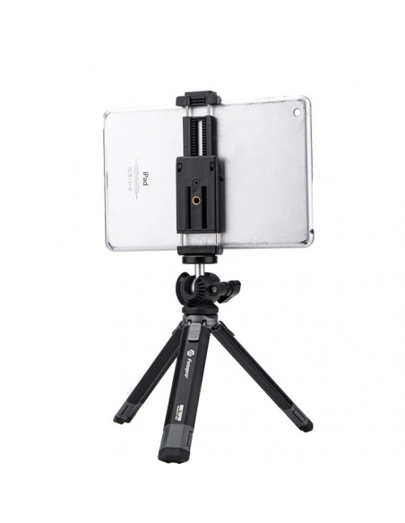 Sturdy holder The Fotopro ID 90+ Tablet Mount is a versatile holder that supports both smartphones and tablets. Thanks to its light weight and ergonomic design, it fits comfortably in the hand. The holder is made of sturdy ABS material, ensuring durability. Highlights Suitable for both phones and tablets Can be used with all types of Fotopro selfie sticks Made of strong ABS material The holder is designed for easy mounting and provides a firm grip for your device, making it ideal for both everyday use and professional applications., Suitable for all types of Fotopro selfie sticks Suitable for phone and ipad Weight (g) 100g Material aluminium Dimensions 8x3x4cm Brand Fotopro 6 years warranty