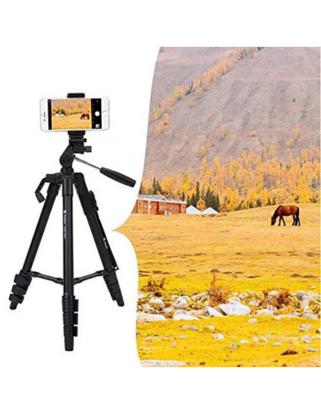 The versatile tripod The Fotopro X1 (Digi 3400+SJ 85+GA 1) Aluminum Tripod is a versatile and portable tripod designed specifically for both smartphones and action cameras. This bundle includes the Fotopro Digi 3400 tripod, the SJ 85+ phone holder and the GA 1 mounting adapter for GoPro systems. Highlights Lightweight and compact design Maximum height of 120 cm Maximum load of 2 kg Ease of use The tripod's ball head is equipped with a quick release plate. The platform can be attached and removed by a folding system. The 3 way ball head rotates in 3 directions. The dial allows you to align from left to right and top to bottom. Once the ball joint is in place, simply tighten the wheel to lock it. A small turning wheel is located directly below the plate to set the alignment in portrait or landscape format. The top centre column is fitted with a spirit level so that before you place your camera on the tripod, you know whether the tripod is straight. The centre column is height adjustable and is locked with a wheel at the top., Features Digi 3400 Tripod for live streaming and selfies, video recording, live video and audio Sections: 4 Material: aluminium Diameter: 20 mm Folded length: 380 mm Maximum height: 1210 mm Minimum height: 390 mm Maximum load: 2 kg Weight: 540 grams Features SJ 85+ Phone holder Range: 56 90 mm Dimensions: 3.6 x 7.8 x 2.5 cm Weight: 29 grams Features GA 1 GoPro mounting adapter 1/4â tripod thread Weight: 10 grams , 1x Fotopro Digi 3400 tripod 1x Fotopro SJ 85+ phone holder 1x Fotopro GA 1 mounting adapter