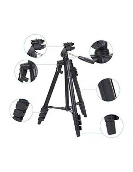 The versatile tripod The Fotopro X1 (Digi 3400+SJ 85+GA 1) Aluminum Tripod is a versatile and portable tripod designed specifically for both smartphones and action cameras. This bundle includes the Fotopro Digi 3400 tripod, the SJ 85+ phone holder and the GA 1 mounting adapter for GoPro systems. Highlights Lightweight and compact design Maximum height of 120 cm Maximum load of 2 kg Ease of use The tripod's ball head is equipped with a quick release plate. The platform can be attached and removed by a folding system. The 3 way ball head rotates in 3 directions. The dial allows you to align from left to right and top to bottom. Once the ball joint is in place, simply tighten the wheel to lock it. A small turning wheel is located directly below the plate to set the alignment in portrait or landscape format. The top centre column is fitted with a spirit level so that before you place your camera on the tripod, you know whether the tripod is straight. The centre column is height adjustable and is locked with a wheel at the top., Features Digi 3400 Tripod for live streaming and selfies, video recording, live video and audio Sections: 4 Material: aluminium Diameter: 20 mm Folded length: 380 mm Maximum height: 1210 mm Minimum height: 390 mm Maximum load: 2 kg Weight: 540 grams Features SJ 85+ Phone holder Range: 56 90 mm Dimensions: 3.6 x 7.8 x 2.5 cm Weight: 29 grams Features GA 1 GoPro mounting adapter 1/4â tripod thread Weight: 10 grams , 1x Fotopro Digi 3400 tripod 1x Fotopro SJ 85+ phone holder 1x Fotopro GA 1 mounting adapter