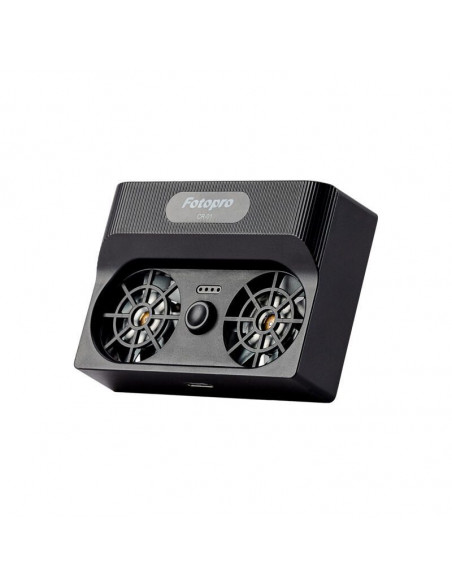 Cool, quiet and efficient The Fotopro CR 01 Camera Cooler is an innovative solution, specially designed for system cameras, to prevent overheating during prolonged use. With its active cooling system, integrated with a powerful cooling fan, the CR 01 offers optimum performance even in hot environments. Highlights Specially designed for system cameras With a 2000mAh internal battery A noise level of just 32 decibels Advanced functionalities With a 2000mAh internal battery, the CR 01 offers an impressive battery life of 10.2 hours at low speed, 7 hours at middle speed and 4.7 hours at high speed, keeping you shooting and filming without interruption. Charging is easy via the USB C port, providing a convenient and versatile charging experience. Optimal ease of use The Fotopro CR 01 is designed with ease of use in mind. With an operating temperature ranging from 10 to 60 degrees Celsius, this camera cooler offers reliable performance in various environments. Moreover, its noise level of only 32 decibels ensures that your recordings will not be disturbed by disturbing background noise. Compatibility and dimensions The CR 01 is compatible with a wide range of popular cameras, including the Sony A7 IV, A7S III, A7 C, ZV E1, ZV E10, A6700, FX30, the Canon R5, R6, R7, 90D and the Fujifilm XS10, XT4 and X H2S. Measuring 75 x 53 x 25mm and weighing just 82 grams, this camera cooler adds minimal bulk to your gear while offering maximum functionality., 2000mAh internal battery Usage time 10.2 hours on low speed, 7 hours on middle speed and 4.7 hours on high speed Charging via USB C port Operating temperature 10 to 60 degrees Fan noise level 32 decibels Attach to camera using supplied Velcro or elastic straps Compatible with selected cameras including Sony A7 IV, A7S III, A7 C, ZV E1, ZV E10, A6700, FX30, Canon R5, R6, R7, 90D, Fujifilm XS10, XT4 and X H2S Dimensions of 75 x 53 x 25mm Weighs 82 grams