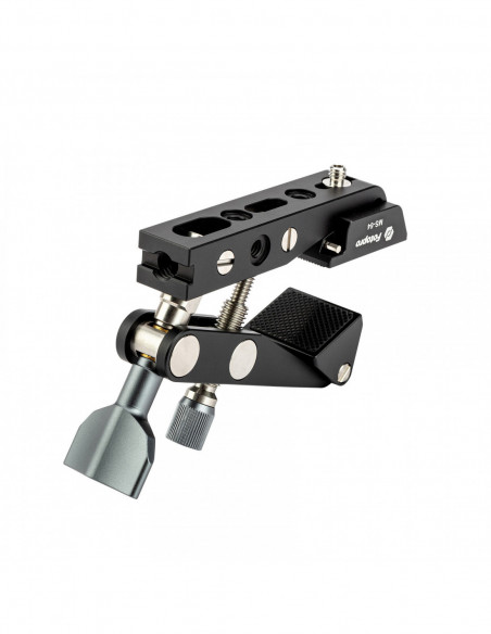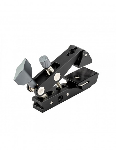 Multifunctional clamp The durable Fotopro Clamp MS 64 with 1/4â and 3/8â threaded connections are handy fittings for attaching arms and other equipment to tubes or flat surfaces such as, for example, a tripod leg, shelf or table. The clamps fit tubes from 20 to 80 millimetres in diameter. Highlights Handy tool for attaching attachments Equipped with 3/8â 16 and 1/4â 20 threaded connections Load capacity of up to 12 kg Versatile and robust The clamp features 3/8â 16 and 1/4â 20 threaded connections, allowing you to attach various accessories. For example, you attach the clamps to cameras, umbrellas, other clamps or studio lamps. These sturdy clamps are made of lightweight aluminium and feature a metal lever for safe and secure attachment., Suitable for tubes from 20 to 80 millimetres in diameter Equipped with 1/4â 20 and 3/8â 16 threaded connections Robust metal construction Load capacity 12 kg Weighs 280 grams , 3/8â threaded adapter 1/4â to 3/8â screw