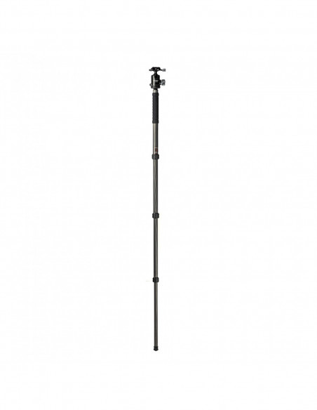 The most stable tripod for landscape photography The Fotopro X go Max E 2 Carbon Tripod with FPH 62QP ball head has legs with 4 sections that are locked with a twist lock system. With the centre column extended, the tripod has a maximum working height of 170 cm. Reversing the centre column allows a minimum working height of 47.5 cm. The variable leg angles allow the tripod to adjust to uneven terrain. Highlights 2. 3. Dual 360° panorama ball head and double extension holes. 4. Equipped with tripod and monopod functions. With a maximum height of 170 cm Lightweight and portable design This tripod is made of high quality carbon fibre, which contributes to its light weight of just 1500 grams, while still offering an impressive carrying capacity of up to 20 kg without a ball head. The compact design allows the tripod to fold to a length of 47.5 cm, making it easy to carry. The minimum working height is 47.5 cm and it can be extended to 170 cm, making the tripod flexible for various shooting situations. Always a straight horizon The Fotopro X go Max E 2 Carbon Tripod is equipped with a spirit level so you always have a straight horizon. FPH 62QP ball head The tripod comes with the Arca type FPH 62QP ball head that can carry cameras weighing up to 12 kilograms with its quick release plate. The tripod head has two separate knobs, one that controls the movement of the ball, which can be set at a 90 degree angle, and a second knob that controls the 360 degree pan. 1/4 Quick Lock System The 1/4 Quick Lock System allows you to quickly unfold the legs of the tripod. This system is ideal for situations where time is a crucial factor. By turning the lock only a quarter turn, you can quickly adjust and lock the legs in length. This makes it easy to quickly adjust the height to changing conditions. Detachable monopod One of the tripod's legs is detachable, so it can be used as a monopod. This gives you camera support when you can't use the tripod in certain environments. Multifunctional centre column The centre column features a hook for attaching counterweight for increased stability. It can also be inverted for positioning low to the ground. The top of the tripod includes two 1/4" 20 accessory mounting points for adding extension arms for attaching monitors, microphones, compact lights and more. Adaptable to any surface Whether you're working indoors or on rough terrain outside, the X Go Max E 2 adjusts effortlessly. The legs feature rubber feet that protect delicate surfaces such as wooden floors and tiles. For more grip on soil, ice or sand, for example, you can remove the rubber feet and use the hidden spikes., Legs with 4 sections and twist lock locking mechanism Maximum working height of 170 cm (with centre column extended) Minimum working height of 47.5 cm Variable leg angles for uneven terrain Lightweight carbon fibre construction Weight of 1500 grams Maximum load capacity of 20 kg without ball head Foldable length of 47.5 cm Spirit level for straight horizons Arca type FPH 62QP ball head Ball head supports up to 12 kg Two knobs on ball head for ball and pan adjustment 1/4 Quick Lock System for quick adjustment of legs Removable monopod function Multifunctional centre column with hook for counterweight Reversible centre column for low positioning Two 1/4" 20 accessory attachment points Rubber feet and removable spikes for different surfaces