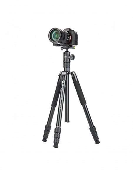Excellent travel size tripod The Fotopro X Go Chameleon E 2 Aluminium Tripod is a versatile tripod made of aluminium, suitable for DSLR cameras, system cameras and camcorders. Highlights Dual 360° panorama beam head Convertible to monopod Connection for accessories Flexible working height With a working height of 43.7 to 1585cm, the tripod adapts to different situations. The legs can be positioned parallel to the ground for flat positioning, ideal for macro photography or low angles. Flexible ball head The ball head offers precise control and smooth 360° panning, useful for panoramic photography and video shooting. Monopod functionality The X go Chameleon E2 can convert into a monopod in seconds, making it a versatile choice on the go., Model: X go Chameleon E 2 Maximum height: 1585 mm Max. Height (Monopod): 1320mm Minimum height: 437mm Sections: 4 Weight: 1.4 kg Tube diameter: â 25 Load capacity: 10 kg Folded length: 442 mm Fitting1/4 standard screw