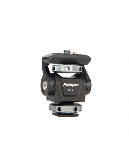 Small size, large load capacity Fotopro MT 2 Metal Damping Ball Head is a small ball head that you can mount on your camera It features a standard 1/4Ⳡthread. It is extremely light and durable, with a maximum load capacity of 3 kg. Highlights Metal cushioning ball head Multi angle adjustable Universal Arca Swiss Strong and durable The MT 2 has a load capacity of up to 3 kg. The head is made of high quality metal and weighs only 75 g. The MT 2 is equipped with a standard 1/4Ⳡtripod thread on the bottom and has a universal Arca Swiss so it is suitable for a variety of devices. Multi angle adjustability The MT 2 has an inclined position 180° and can be 360° horizontal making it adaptable for any angle., Metal cushioning ball head Multi angle adaptable: Tilt 180°, horizontal 360° Universal Arca Swiss and ¼" Carrying capacity: 3 kg Weight: 75 g Dimensions: 53 x 41 x 26 mm 6 year warranty , 1 x Fotopro MT 2 Metal Damping Ball Head