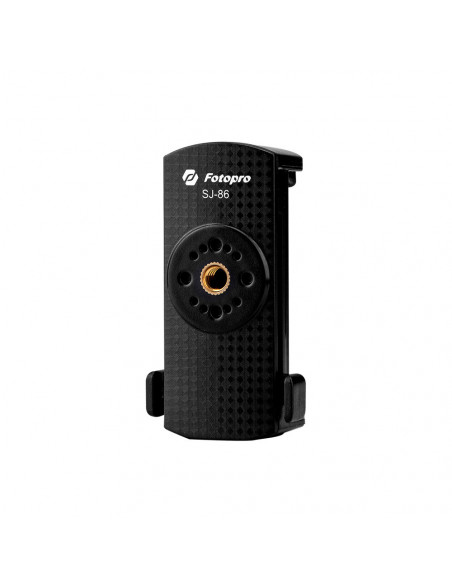 Universal smartphone holder The Fotopro Universal Smartphone Holder SJ 86 offers versatile adjustability with a shooting angle that can be adjusted up to 180° in multiple directions. This makes it easy to position your smartphone at the ideal angle for both photography and videography. Highlights Adjustable shooting angle Standard 1/4â threaded port Compatible with most smartphones Wide compatibility With a standard 1/4â threaded port, the SJ 86 is compatible with any type of tripod. Whether you use a compact tripod or a professional setup, this smartphone holder is a handy addition for all your creative projects., Material: Plastic Colour: Black Weight: 44gr Length: 4cm Width: 3.3cm Height: 17.8cm 6 year warranty