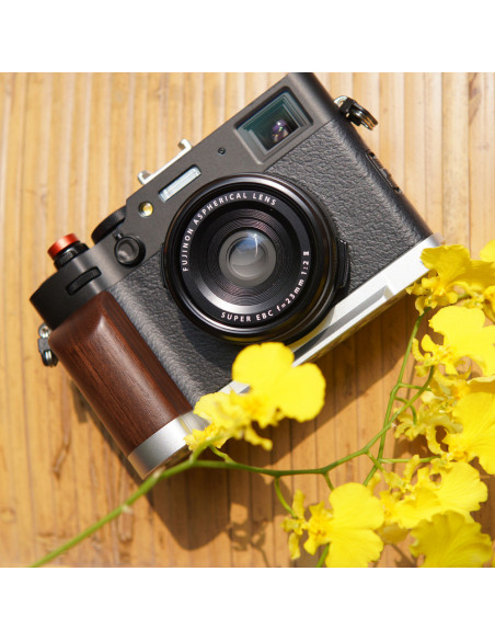 Experience seamless and comfortable operation Designed for the Fujifilm X100VI setup, the Fotopro QAL X100VI grip handle for Fujifilm X100VI features an ergonomic L shaped handle with a vintage look and comfort. The Arca swiss compatible plate helps with easy connection to the tripod and you can replace the battery instantly thanks to the engraved design. Highlights Ergonomic handle Retro look Arca swiss compatible plate , Suitable for Fijifilm X100VI, X100V Dimensions folded: 131.3 x 53.6 x 60 mm Weight: 76 g 6 year warranty
