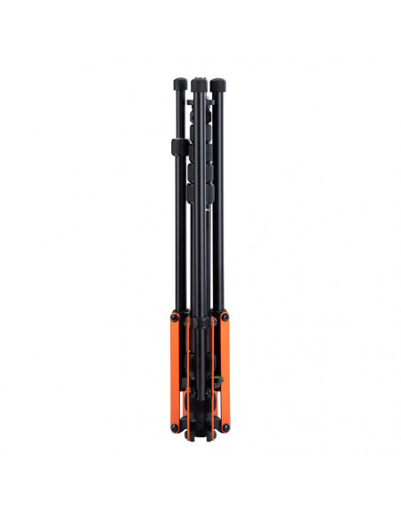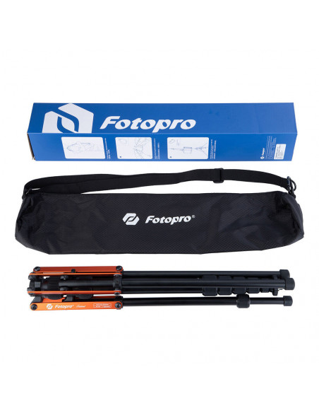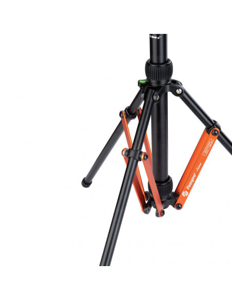 The versatile tripod The Fotopro Lamp Tripod TR 02A Black + Orange is an aluminium lamp tripod for the professional photographer and videographer looking for stability and flexibility. This tripod is equipped with an advanced air pressure damping system that prevents the tripod from suddenly collapsing, significantly increasing the safety of your equipment. Highlights Equipped with an advanced air pressure damping system Maximum height of 184 cm Load capacity of 2 kg Lightweight but sturdy Weighing just 1030gr, the TR 02A is incredibly light yet sturdy enough to keep your lights or camera steady. The tripod has an impressive maximum height of 184cm, giving you more freedom when setting up your equipment for different shooting scenarios. Combination tripod and lamp stand The top of the tripod features a special light connector that can be easily unscrewed and converted to a universal 1/4â³ thread. This makes the TR 02A extremely versatile, allowing you to use it not only for lighting, but also for cameras, tripod heads and other equipment that requires a 1/4â³ threaded connection. Whether you shoot, film, or work with lighting, the TR 02A provides what you need to take your work to the next level., Carrying capacity: 2kg Working height range: 0.5 to 2.1m Folded length: 49cm Lightweight and durable aluminium Weighs 1030 grams