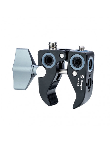 The Fotopro MS 62 Clamp is a universal, portable and stable clamp. The clamp has a maximum load capacity of 18kg, has 8 screw holes for extensions (6x1/4" and 2x3/8") such as for clamping to the table, bike or to your tripod. It is therefore multifunctional in use.