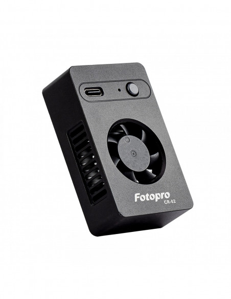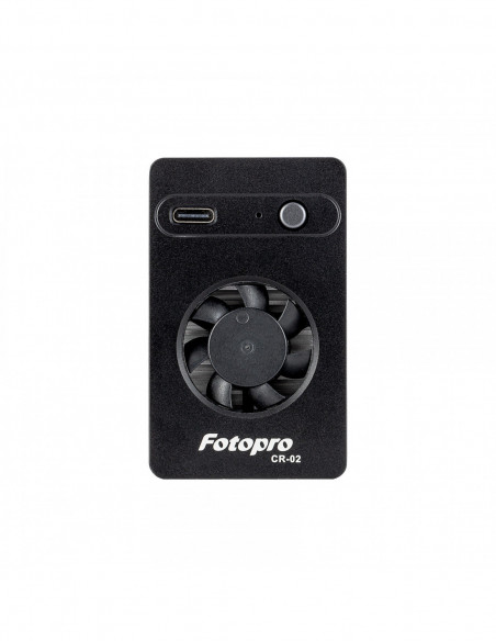 Cool, quiet and efficient The Fotopro CR 02 Camera Cooler is an innovative solution specially designed for system cameras to prevent overheating during prolonged use. With its active cooling system, integrated with a powerful semiconductor cooling radiator, the CR 02 offers optimal performance even in hot environments. Highlights Specially designed for system cameras Power supply via USB Type C A noise level of only 25 decibels Advanced functionalities With the required power supply via USB Type C, the CR 02 offers a convenient and versatile user experience. You can easily connect the fan to a power bank with USB Type C for extended use, keeping you shooting and filming without interruptions. Optimal ease of use The Fotopro CR 02 is designed with ease of use in mind. With an operating temperature ranging from 30 to 80 degrees Celsius, this camera cooler offers reliable performance in various environments. Moreover, its noise level of only 25 decibels ensures that your recordings will not be disturbed by disturbing background noise. Compatibility and dimensions The CR 02 is compatible with a wide range of popular cameras, including the Sony A7 IV, A7S III, A7 C, ZV E1, ZV E10, A6700, FX30, Canon R5, R6, R7, 90D, Fujifilm XS10, XT4 and X H2S. Measuring 69 x 42.5 x 21mm and weighing just 80g, this camera cooler adds minimal bulk to your gear while offering maximum functionality., Made of aluminium USB C port for powering Fan noise level 25 decibels Operating temperature 30 to 80 degrees DC charging/power bank Input power supply DC 5V/2A Dimensions of 69 x 42.5 x 21mm Weighs 80 grams , USB Type C cable 1 metre 2 pairs of Velcro straps 1 pair of rubber bands , with cameras including Sony A7 IV, A7S III, A7 C, ZV E1, ZV E10, A6700, FX30, Canon R5, R6, R7, 90D, Fujifilm XS10, XT4 and X H2S