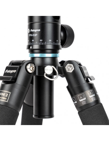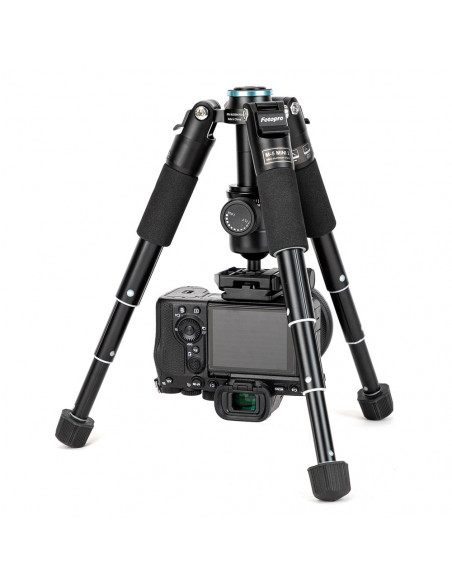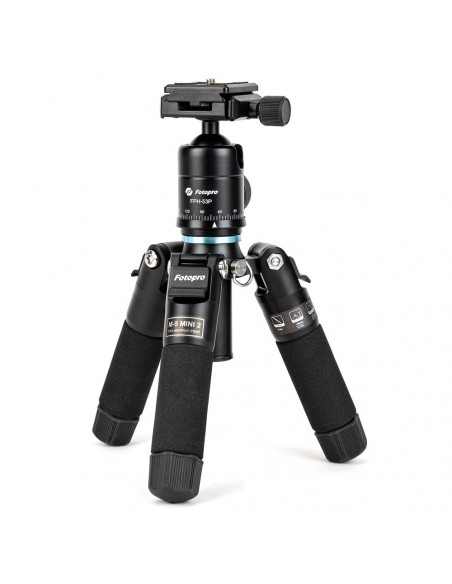 Ideal for travelling With the Fotopro M 5 Mini 2, you enjoy portable stability for your camera. This tripod weighs just 0.67 kg and has a load capacity of up to 8 kg, ensuring an excellent power to weight ratio. The three inverted folding legs provide a folded length of just 170 mm, ideal for travel or limited bag space. Highlights Compact design & lightweight. Carrying capacity of up to 8 kg Quick lock system The tripod is equipped with a built in ball head for quick repositioning and panoramic shots and a spirit level for a straight horizon. , Maximum height: 486 mm Minimum height: 139mm Folded length: 170mm Sections: 5 Weight: 0.74 kg Leg diameter: 25 mm Load capacity: 8 kg 6 year warranty , 1 x Fotopro M 5 Mini 2 1 x Allen key 1 x Carrying case