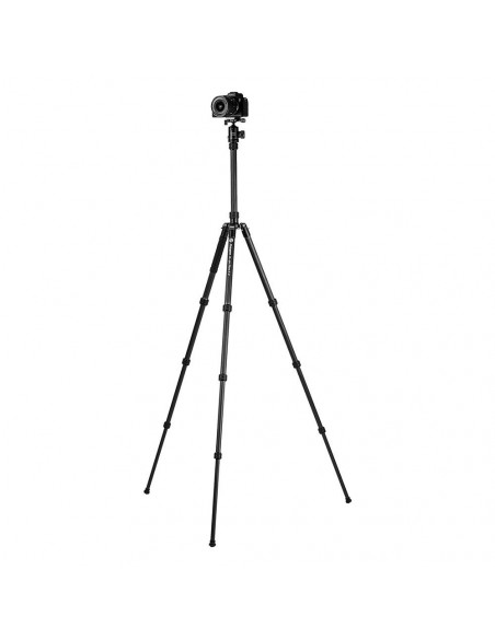 A functional carbon fibre tripod for photography. The Fotopro X go Plus E 2 is a professional carbon fibre tripod with a maximum height of 185 centimetres and a carrying capacity of 10 kilograms. The tripod is equipped with a dual 360 degree panorama ball head and two extension holes. The detachable monopod has a maximum height of 191 centimetres. When folded, the tripod has a length of only 44 centimetres, making it easy to carry. Highlights Travel size and foldable. Dual 360° panorama ball head and double extension holes Equipped with tripod and monopod functions Lightweight and portable design This tripod is made of high quality carbon fibre, which contributes to its light weight of just 1300g, while still offering an impressive carrying capacity of up to 10kg. The compact design allows the tripod to fold to a length of 44 centimetres, making it easy to carry. The minimum working height is 43.6 centimetres and it can be extended to 185 centimetres, making the tripod flexible for various shooting situations. 1/4 Quick Lock System The 1/4 Quick Lock System allows you to quickly unfold the tripod's legs. This system is ideal for situations where time is a crucial factor. By turning the lock only a quarter turn, you can quickly adjust and lock the legs in length. This makes it easy to quickly adjust the height to changing conditions., Professional carbon fibre tripod Detachable monopod with a maximum height of 191 cm Travel size and foldable The legs are adjustable at 3 angles Dual 360° panorama ball head Two extension holes for accessories Max. Height: 1850 mm Min. height: 436 mm Diameter: 4+2 sec from centre column Weight: 1.3 kg Dia. of tube: 25 mm Max. Load: 10 kg Folded size: 440 mm With1/4 standard screw Max. Height (Monopod): 1910 mm ,  1 x Carrying case