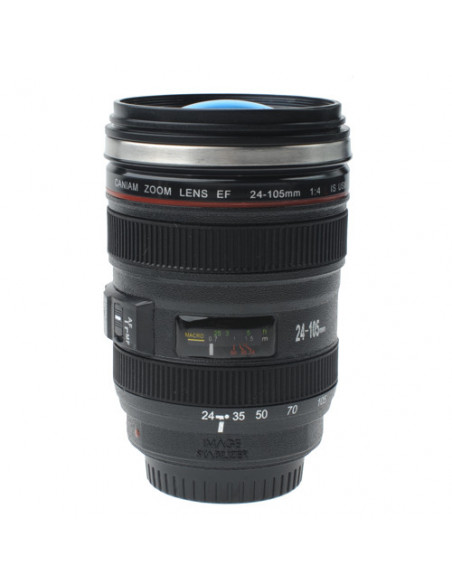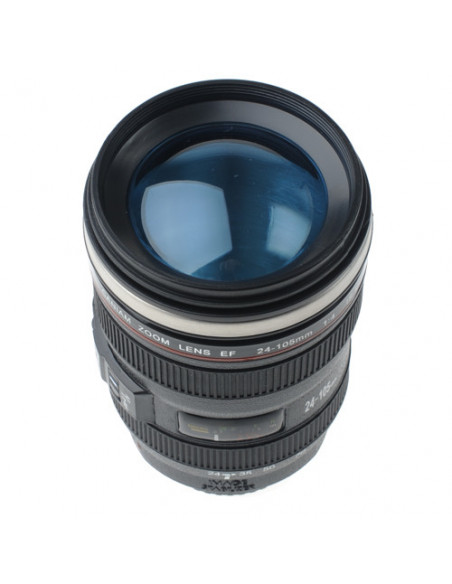 The outside of the drinking cup is shaped like a camera lens and features the same textures and details, making it an eye catching and remarkable design. The inside of the cup is made of stainless steelwhich makes it a convenient and practical solution on the go or in the office.