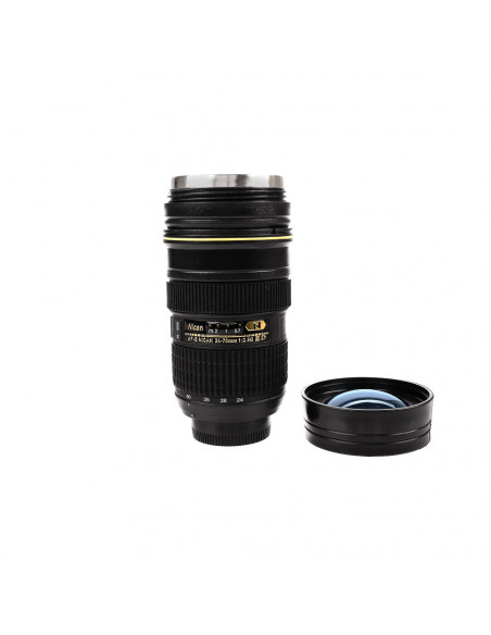 The outside of the drinking cup is shaped like a camera lens and features the same textures and details, making it an eye catching and remarkable design. The inside of the cup is made of stainless steelwhich makes it a convenient and practical solution on the go or in the office.