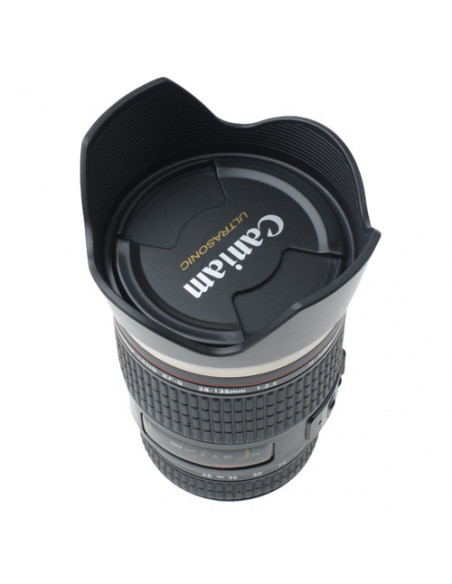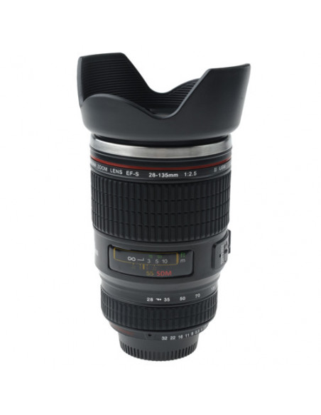 The outside of the drinking cup is shaped like a camera lens and features the same textures and details, making it an eye catching and remarkable design. The inside of the cup is made of stainless steelwhich makes it a convenient and practical solution on the go or in the office.