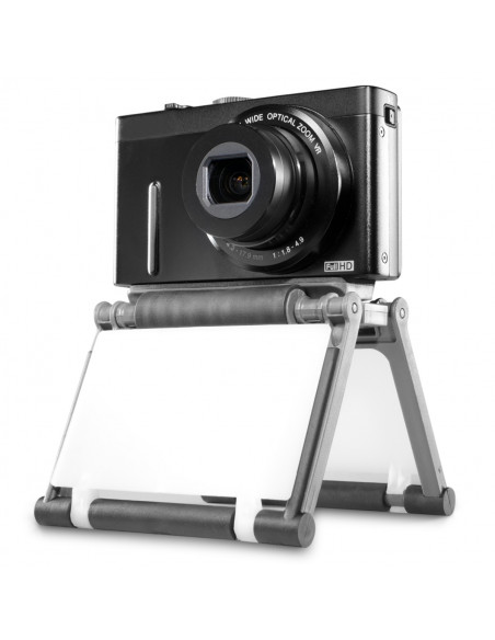Im Gegensatz zu anderen Mini-Stativen ist der Flip Cage™ eine geniale Neuerung, denn er lässt sich eng um die Kamera herum zusammenklappen und bildet dabei einen stoßabsorbierenden Käfig. Auch zum Aufnehmen von Hochformat- und Makroaufnahmen, z.B. von kleinen Gegenstände wie Münzen, Briefmarken oder Schmuck, ist der Flip Cage™ ideal. Ein weicher zweilagiger Umhängegurt ist im Lieferumfang inklusive.