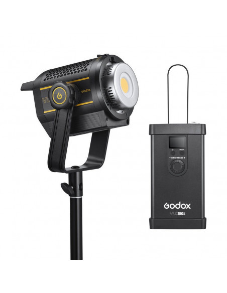 Experience a step up The all new Godox VL150II LED Video Light has inherited all the extraordinary features of the VL series. With features of the VL series, such as stable and powerful output, accurate color reproduction, excellent cooling system, and so on. Upgraded with the brand new 2.4GHz wireless and bluetooth control and with built in FX effects, the Godox VL150II LED Video Light makes the VL Il series more creative expressions and creative expressions efficient and professional. Highlight Compact and lightweight Updated operating system Built in FX effects Compact and lightweight The VL Il series has a very compact and lightweight design of the lamp housing and controller. The separated design of the controller and lamp housing makes it portable and easier to set up, free for any lighting position and much more convenient for intuitive operation. Updated control system for group lighting With the updated built in 2.4G wireless and bluetooth function, the VL Il series goes perfectly with the Godox control system via Godox Light APP and RC A6 remote control (optional). Now you can experience the ultra control of group lighting with the VL II series. Accurate color fidelity The VL Il series also maintains a high standard of color reproduction as all other superior light from Godox has always strived to do. With a CRI of 96+ and TLCl of 96+, they ensure natural and true to life colors in every application. Built in FX effects Equipped with FX effects such as Flash, Storm, Broken Bulb, the VL200II provides the for more creative expression in an instant. Cool and Quiet The ultra quiet cooling fan combined with the advanced air outlet design ensures that the VL150Il delivers the best performance while shooting, while being absolutely silent for interviewing or other shooting with strict noise requirements. Power supply You power the Godox VL150II Series LED Video Light using AC or V mount batteries. Powering the light with a V mount battery gives you more freedom of movement. The batteries connect to the battery plate on the controller box. 360 Grader rotatable bracket With the U type bracket, the lamp can be rotated 360 Grader. When the lamp is attached to a lamp stand or 340 Grader when hanging over a tripod. This makes it suitable for all complex lighting settings on the set. Unlimited creative possibilities The VL Il series is equipped with the most popular Bownes mount and is compatible with various light shapers such as Godox Spotlight Attachment, Fresnel lenses, QR series quick release softboxes, lenses, QR series quick release softboxes and so on. , Model: VL150II Adapter Input: ACI00V 240V 50/60Hz 2A Light Body Input: 35V=4,3A V port battery: Standard voltage:14.8V (optional) Max. Power: 165W CCT Range: 5600£200K CH: 32 GR: 16groups(A,B,C,D,EF,0 9) ID:99 CRI: =96 TLCI: =96 Brightness adjustment range: 0% 100% Working temperature range: 10 GraderC 40 GraderC U type bracket adjustable angle: 0 Grader 360 Grader Dimensions Light Body: 270 x 175 x 212 mm Dimension Controller: 114 x 59 x 258 mm Weight Light Body: 1.72 kg Weight Controller: 0.7 kg 2 year warranty , 1 x Godox VL150II LED Video Light 1 x Controller 1 x Reflector 1 x Lamp cover 1 x Connect cord 1 x Adapter 1 x Power cord 1 x Back clip 1 x Carry Bag