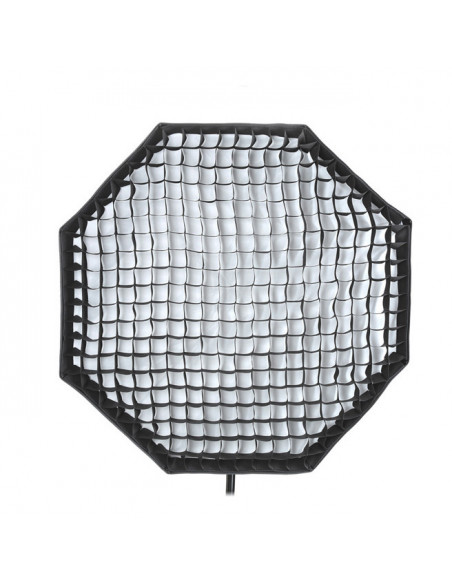 A grid anvendes til at styre spredningen af lyset. Dette kan især være nyttigt i mindre rum. Softboxes bløde lys påvirkes ikke, og du har mere kontrol over lysets retning. Stoffet grid har en velcrostrimmel på siden, hvilket gør det meget nemt at fastgøre grid til softbox.