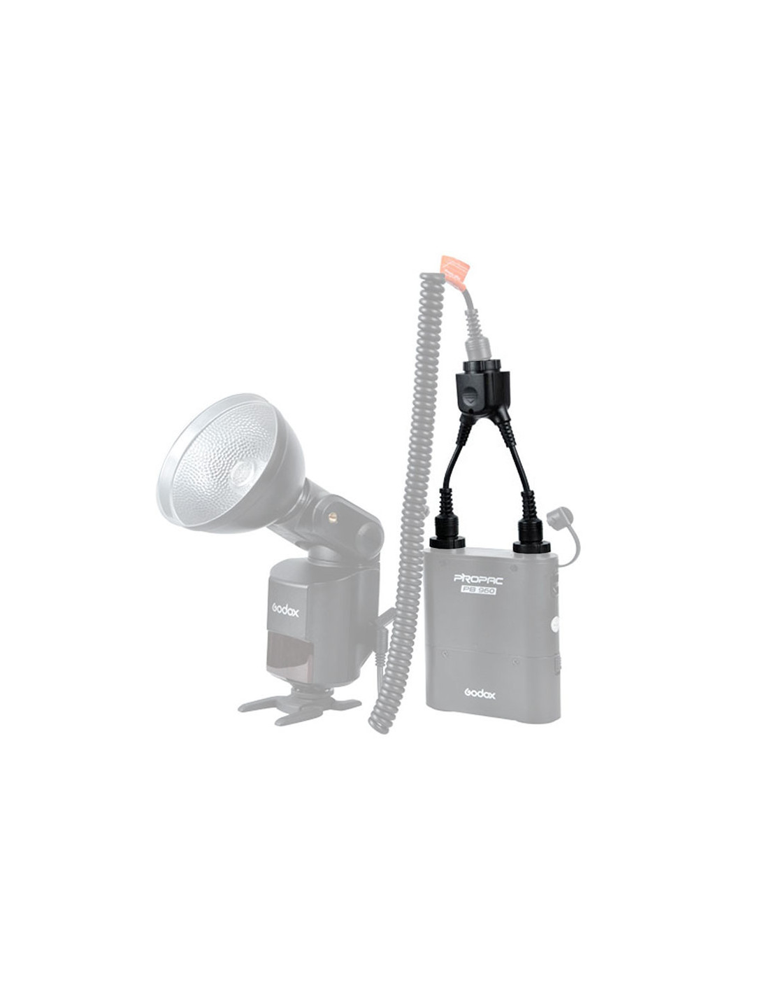 With the Godox Y Cable 2 to 1 you can connect two flash units to one Godox Power Pack. This can be especially useful if you are going to shoot on location and you don't want to travel too hard, you only need to bring one Power Pack.