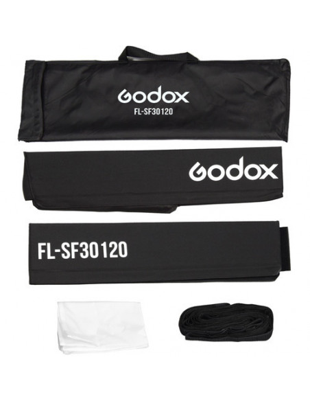 Denne letvægts softbox er lavet af høj kvalitet og holdbare materialer og er let at fastgøre. Godox FL SF30120 Softbox sæt leveres med en diffuser, grid og en praktisk bæretaske til opbevaring og transport af sættet.