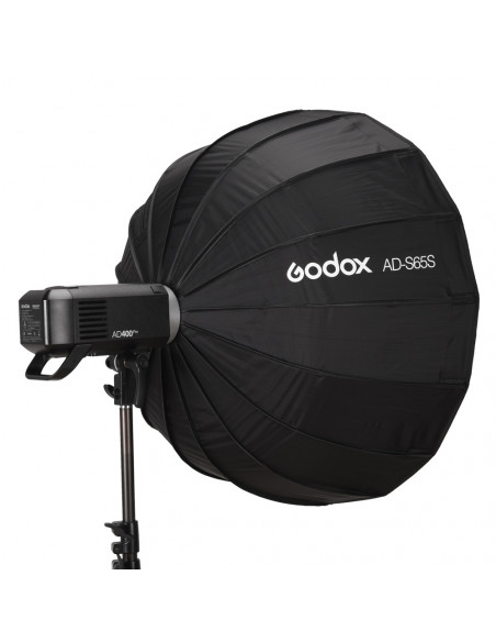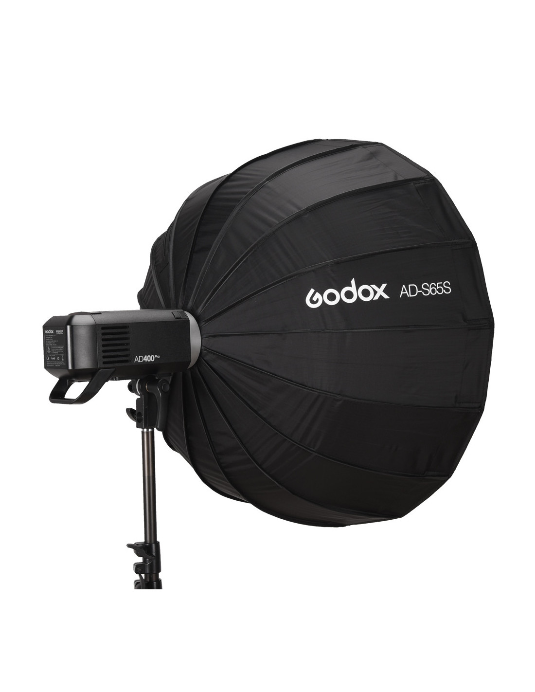 The Godox AD S65 is a multifunctional softbox for strobes with Godox mount, like the AD300, AD400 and AD600Pro.