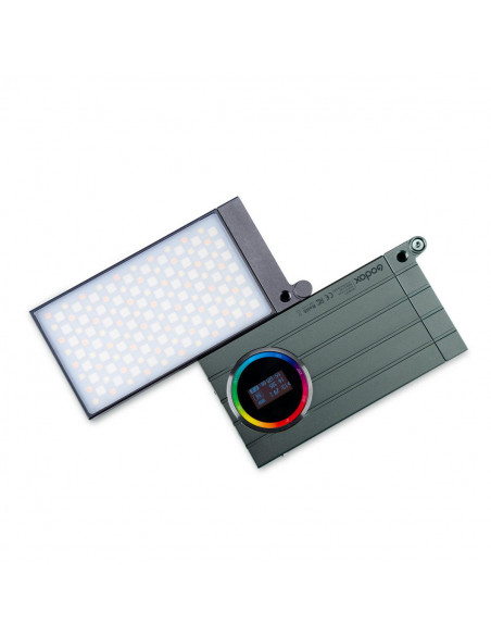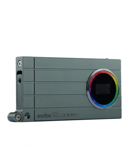 The Godox M1 RGB LED light allows you to adjust the hue and saturation of your lighting to 360 colors in RGB mode.Color temperature is adjustable from 2500 to 8500K, features 15 special effects modes and 40 presets.As for the high CRI of 97, you get natural and precise color rendering.The built in articulated mounting bracket adopts 1/4" threads. A microphone is built in for use with Music mode and react to the beat of the music. Battery life is 2.5h with the built in 2410mAh battery which charges using the included USB Type C cable.The rear LCD screen is controlled via 2 control knobs and 1 button on the side.