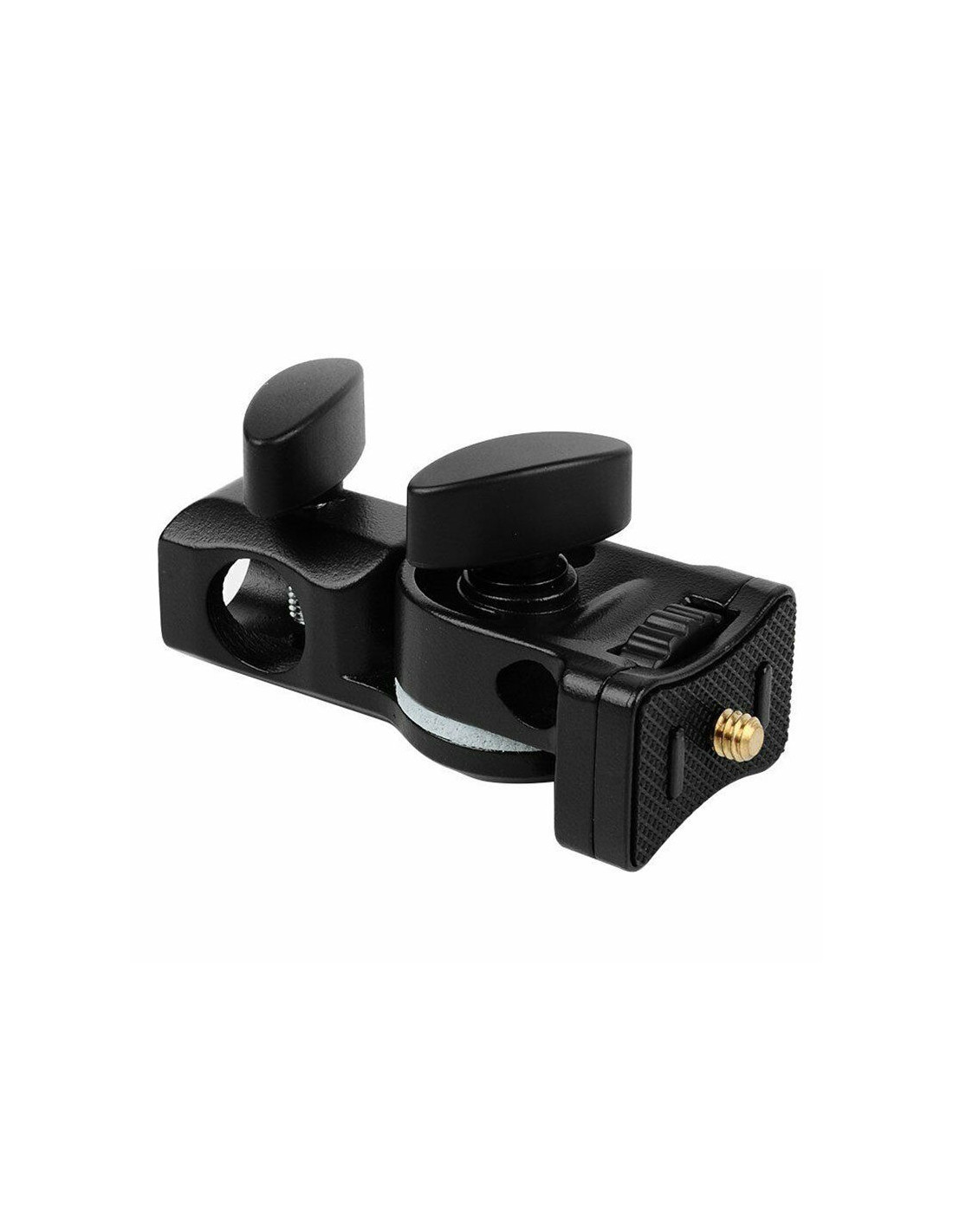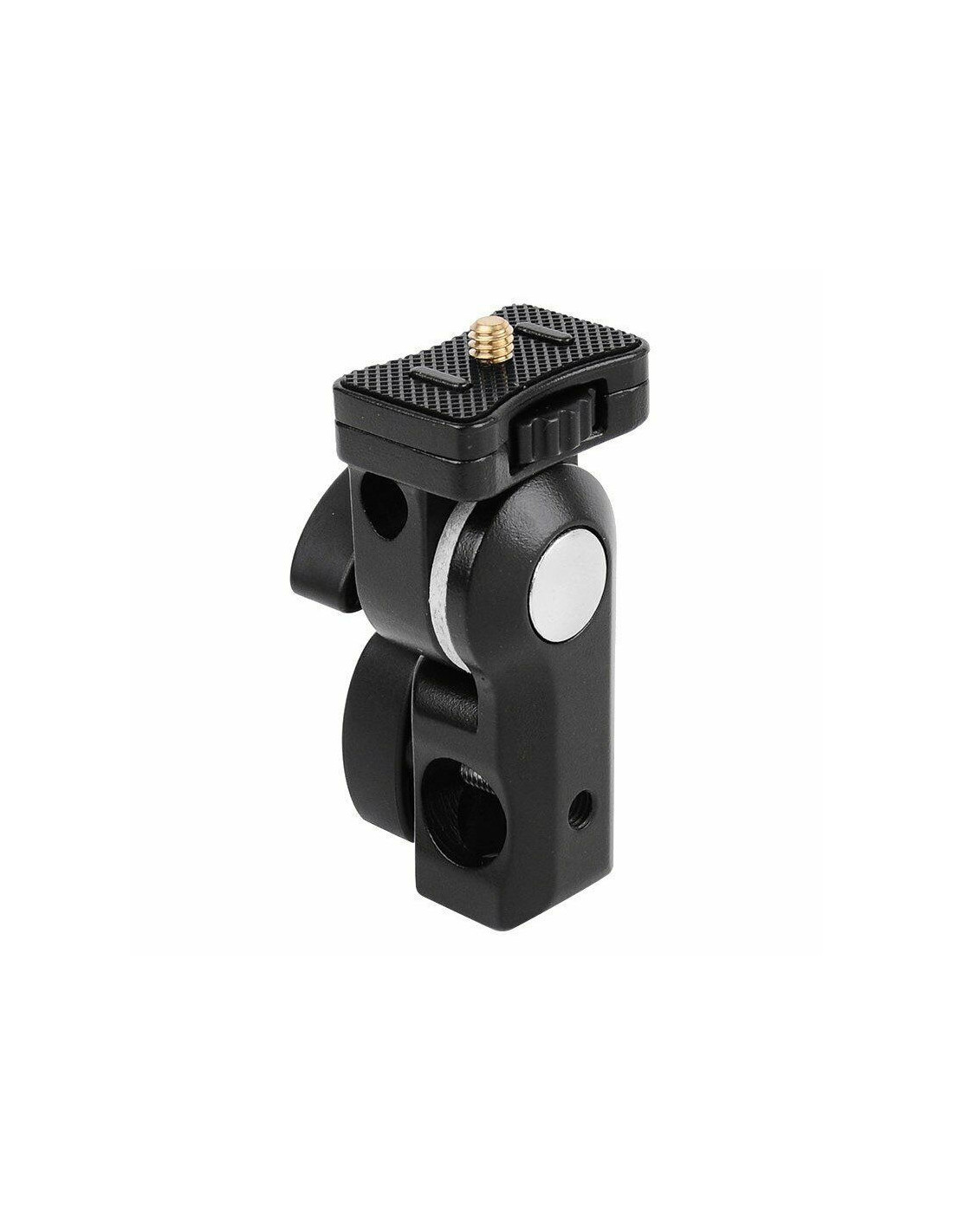 Lampen tripod holderen tilbyder en stabil montering af dit flash hoved og en præcis, trinløs justering af vippevinklen. De 2 store stålskruer fastgør holderen fast i position.