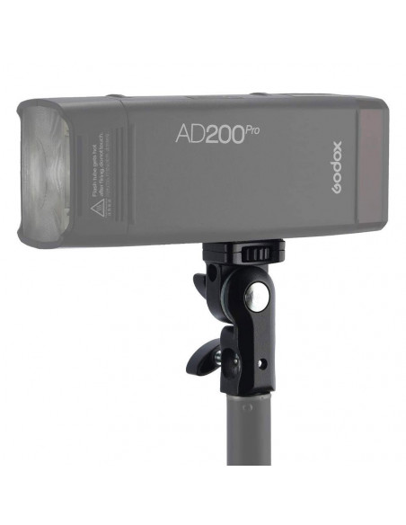The Godox AD E2 Light Stand Holder for AD200 Pro is a full metal holder with freely adjustable angle. The holder is designed to mount your Godox Witstro AD200 Pro Portable Flash on a light stand with 5/8 "standard connection. The nijg head has an integrated umbrella holder.