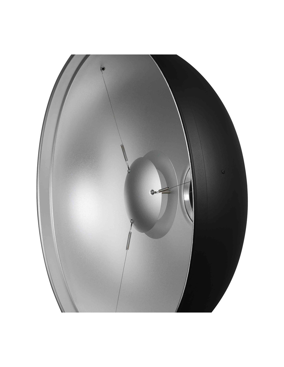 The interior of the beauty dish comes in two coatings: the silver and the white color. Silver interior creates more contrast and brings out more details than the white.
