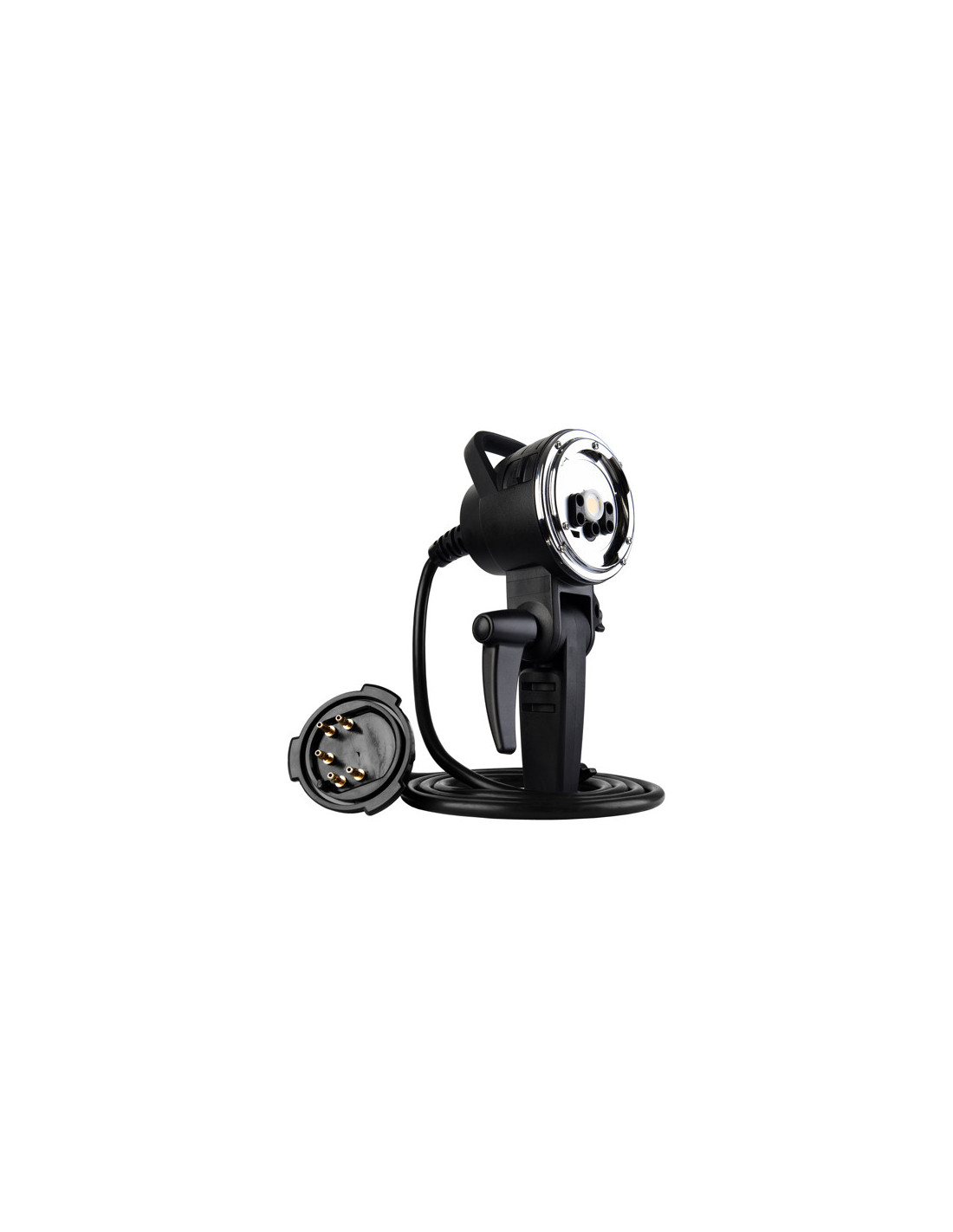 The compact and light AD H600B is powered by the battery of the master flash and therefore has a cable with a length of 2.75 meters. Thanks to the Bowens mount, using accessories such as an optional softbox or reflector is very easy. The ten Watt LED modeling lamp can be switched on or off as desired. This 600ws head is easy to tilt and has a spigot connection at the bottom for placement on a lamp tripod. The power cable has a length of 2.75 meters.