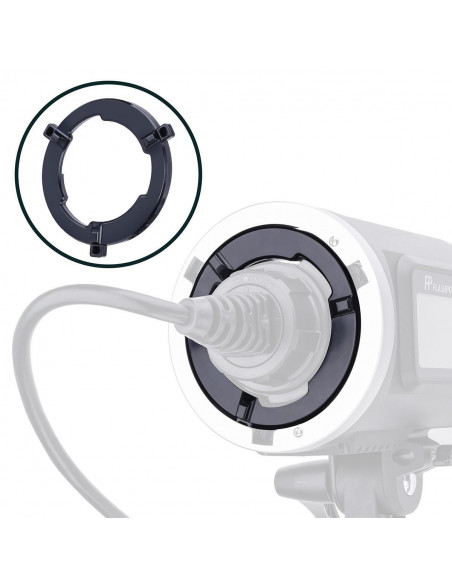 The Godox AD600B Extension Head Locking Ring is a specially shaped ring to lock the power cord of the Godox AD H600 portable flash head when connected to the Godox AD600 portable flash head with Bowens mount.