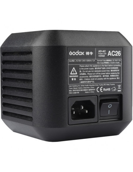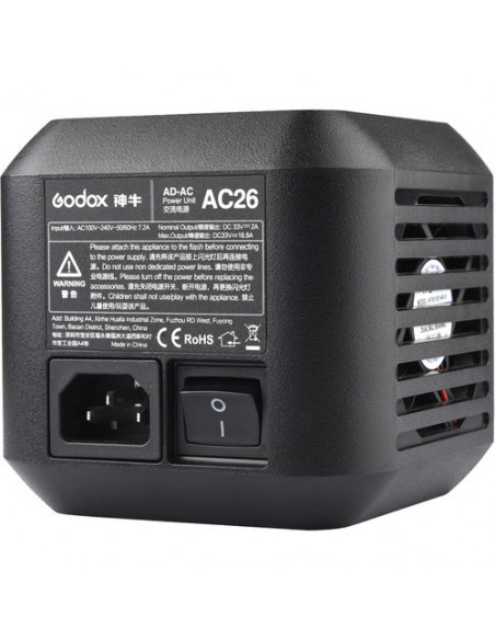 Do you use wireless studio heads that need to be recharged again and again? Then the Godox AD600PRO AC Power Adapter is the solution! Supply your flash head with power from the mains by removing the power pack from the flash head and attaching the AC adapter in its place.