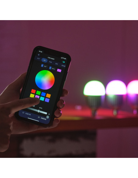 Discover the power of the Godox C10RB KNOWLED RGBWW Creative Bulb. This revolutionary lamp combines reliable brightness with endless creative possibilities. Whether you are shooting professionally or want to create a specific mood, this lamp is always there for you. The C10R, the version without built in battery, offers a high output of 10W. The adjustable colour temperature from 2000K to 10000K and the magenta green adjustment ensure that it mixes perfectly with white light, giving your shots an extra dimension.