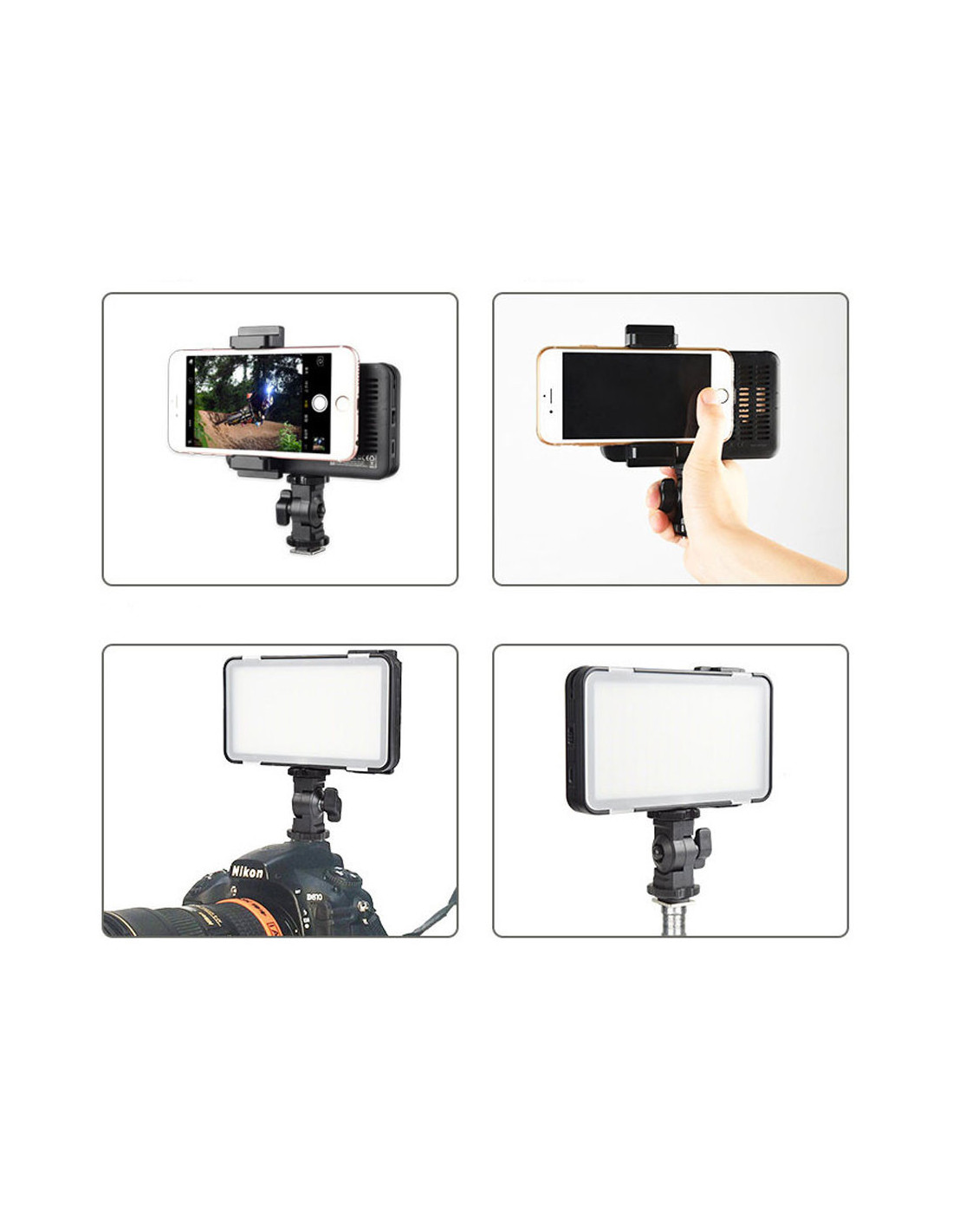 Godox LEDM150 Smartphone LED lampe er specielt udviklet til din smartphone eller SLR kamera. LED-lampen har 150 lysdioder og en CRI på mere end 95. Med denne lampe har du altid lyse lys fotos og videoer, ideel til brug i mørke forhold. Juster lygtens lysstyrke manuelt fra 10% til 100%. Lampen har et indbygget batteri, som du oplade med et micro USB-kabel. Letvægts Godox LEDM150 er praktisk, let at bære.
