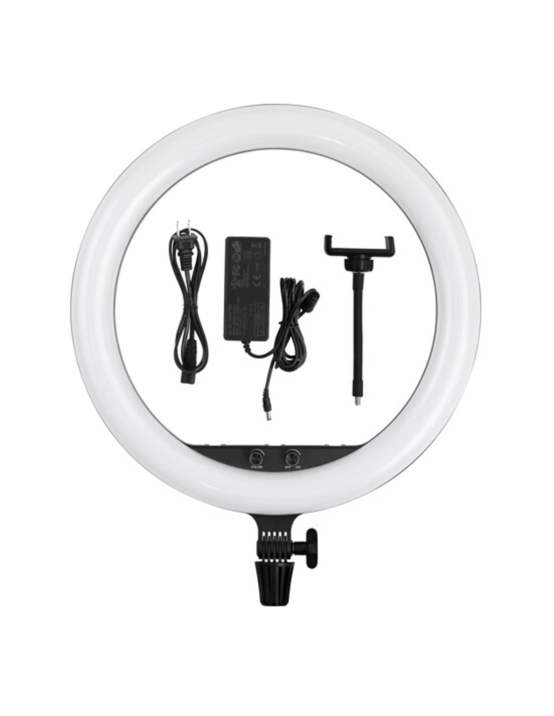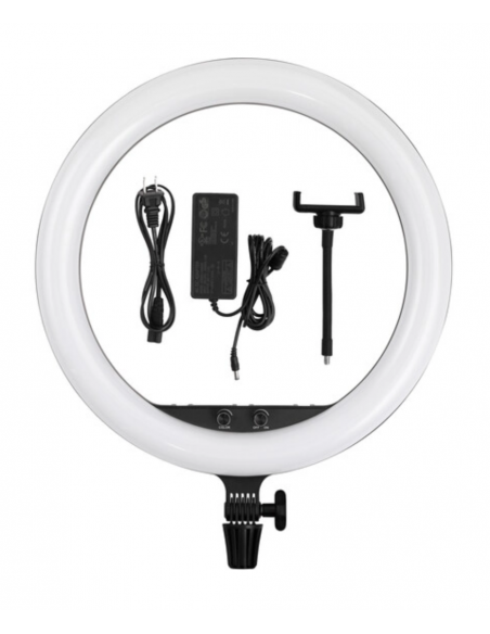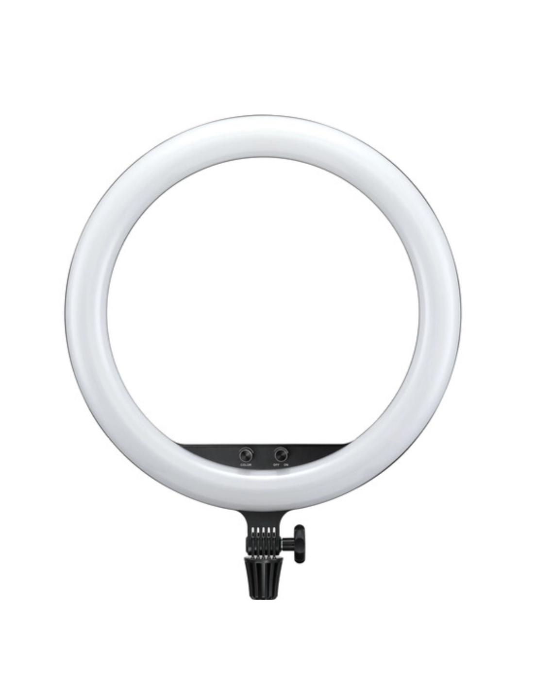 The Godox LR150 LED Ring Light has an adjustable color temperature that is adjustable from 3000 to 6000K, so you can easily adapt the light to other fixtures, ambient light or just for a creative effect. The ring lamp has a diameter of 18 inches.