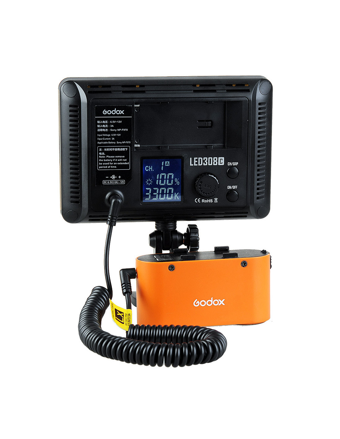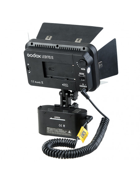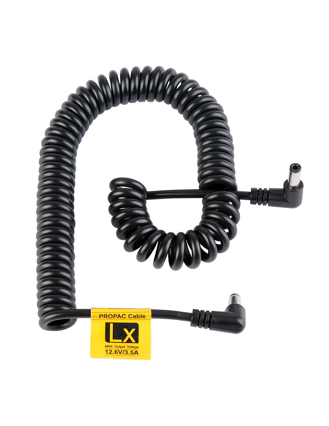 The Godox Kabel LX is a coiled cord with a minimum length of 70 centimeters and a maximum length of 120 centimeters. You use this cable to power the Godox LED 126, LED 170, LED 308 and LED 500 LED lamps with your Godox Propac Power Pack.