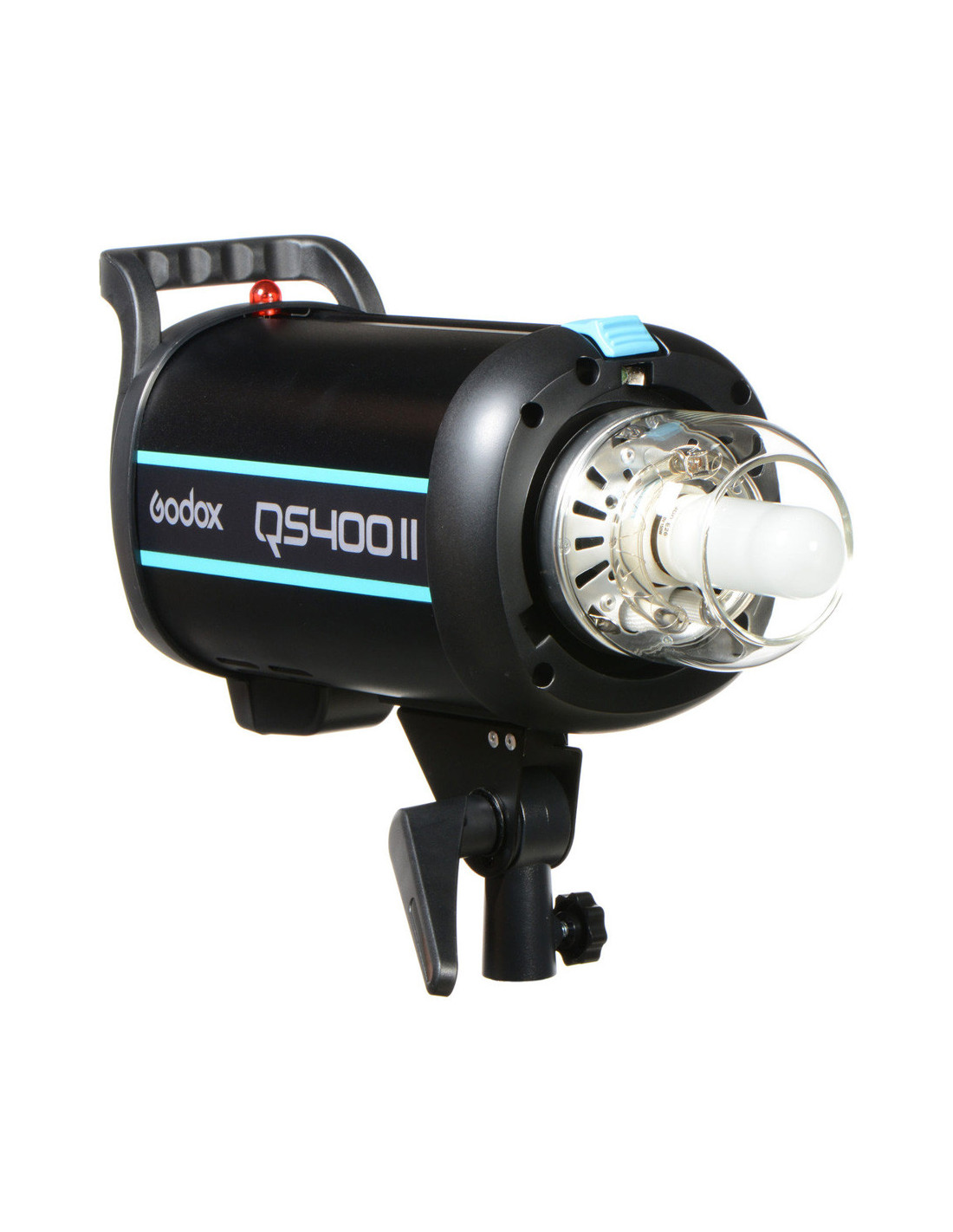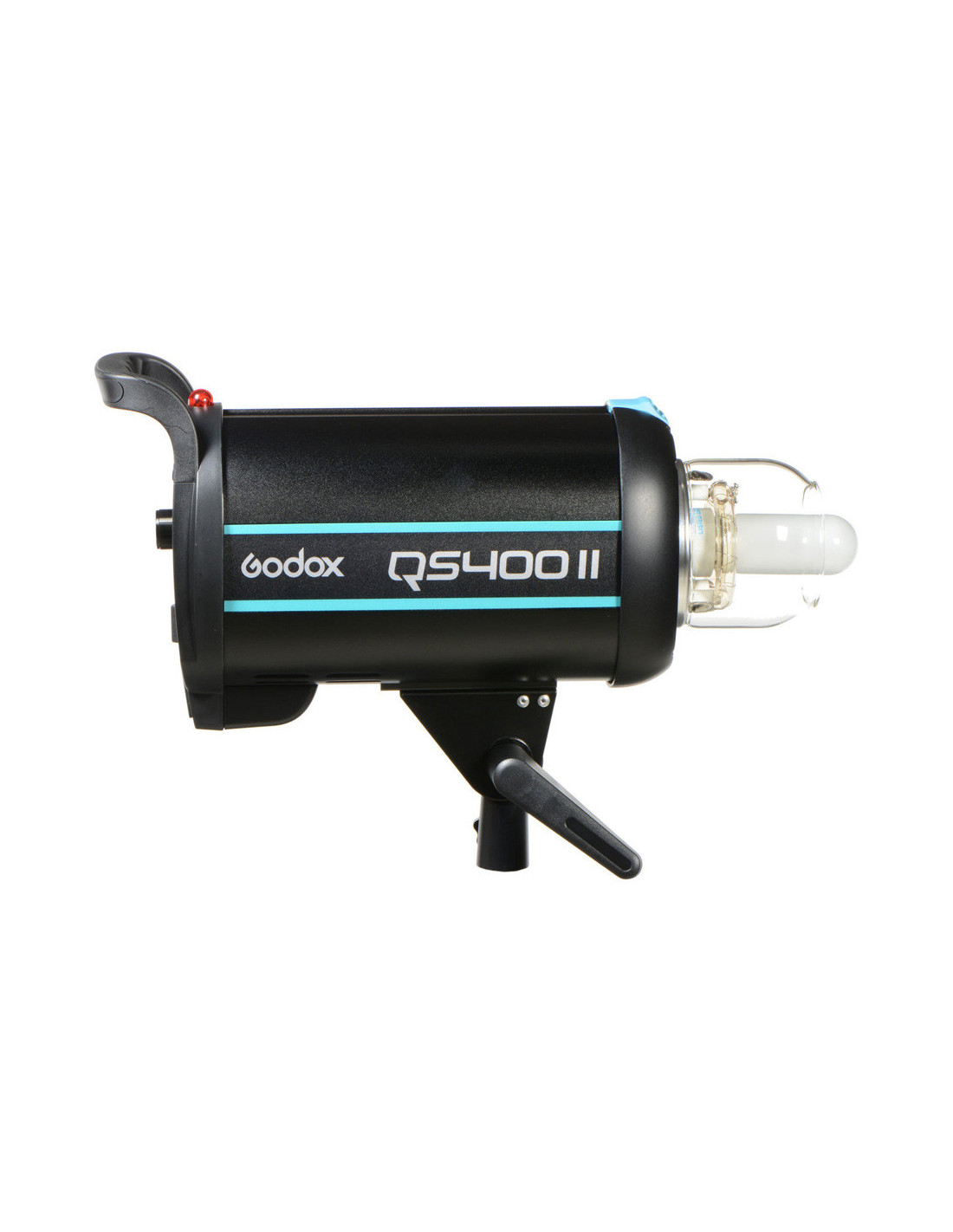 QS400II flash hovederne har en indbygget trådløs 2.4G X-system. Med dette kan du ikke kun udløse flash hoved, men du kan også justere flash power med den valgfri X2 eller X pro trigger. Det har en genanvendelsestid på 0,3 til 1,3 sekunder og en flash varighed på 1/2000 til 1/800 af et sekund. Operationen er meget enkel ved hjælp af trykknapperne og den nemme at læse LCD screen på bagsiden af flash hovedet. Du justerer flash effekt i 50 trin fra 1/32 til fuld. Modellampen har en effekt på 150 Watt og dens lysstyrke kan indstilles fra 5 til 100%.