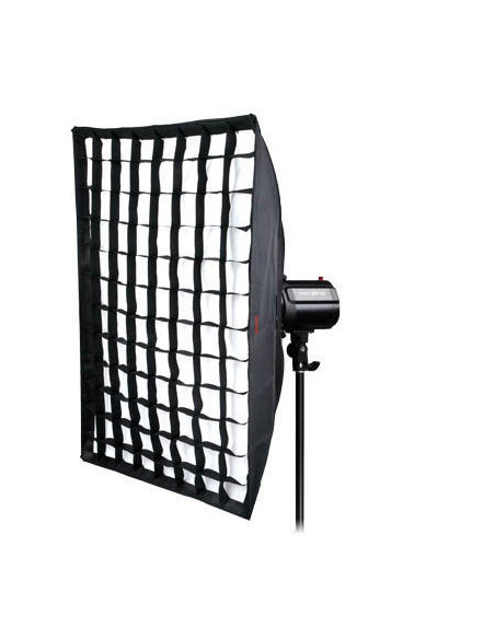 A softbox spreads the flash light in a nice, equal without creating a harsh cast shadow. Especially when taking portraits, on location or in the studio, a softbox is a godsend. Thanks to the Bowens mount, the softbox can be used on any studio flash unit that has a Bowens mount. A grid is used to control the scattering of light. The soft light from the softbox is not affected, but you have more control over the direction of the light. The flexible grid has a Velcro strip on the side making it quick and easy to attach.
