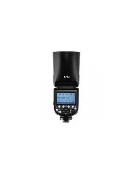 På bagsiden er en nem at læse LCD-display. Den flash hoved af V1 kan drejes 330 grader vandret og kan vippes 120 grader op og ned. Strømmen kan indstilles i 10 trin. I den højeste indstilling har Godox V1 en kraft på 76W / s. Den flash varighed er justerbar fra 1/300 til 1 / 20000s.