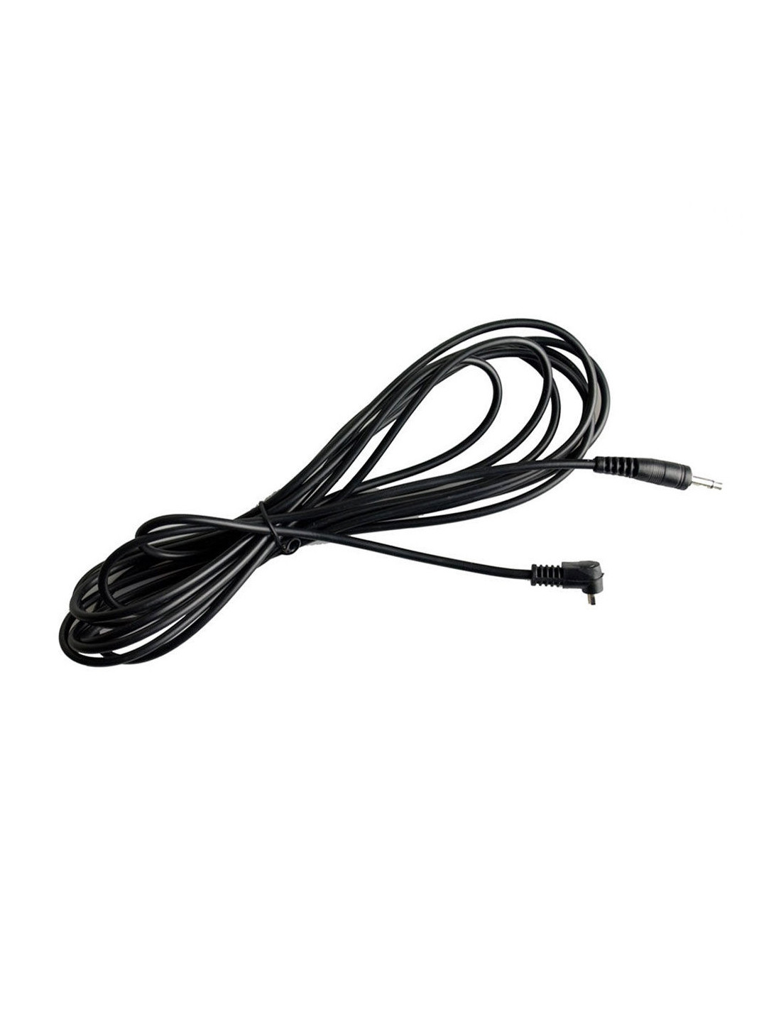 The cable is 3 metres long and has a 3.5mm jack plug at one end and a male PC sync connector at the other.