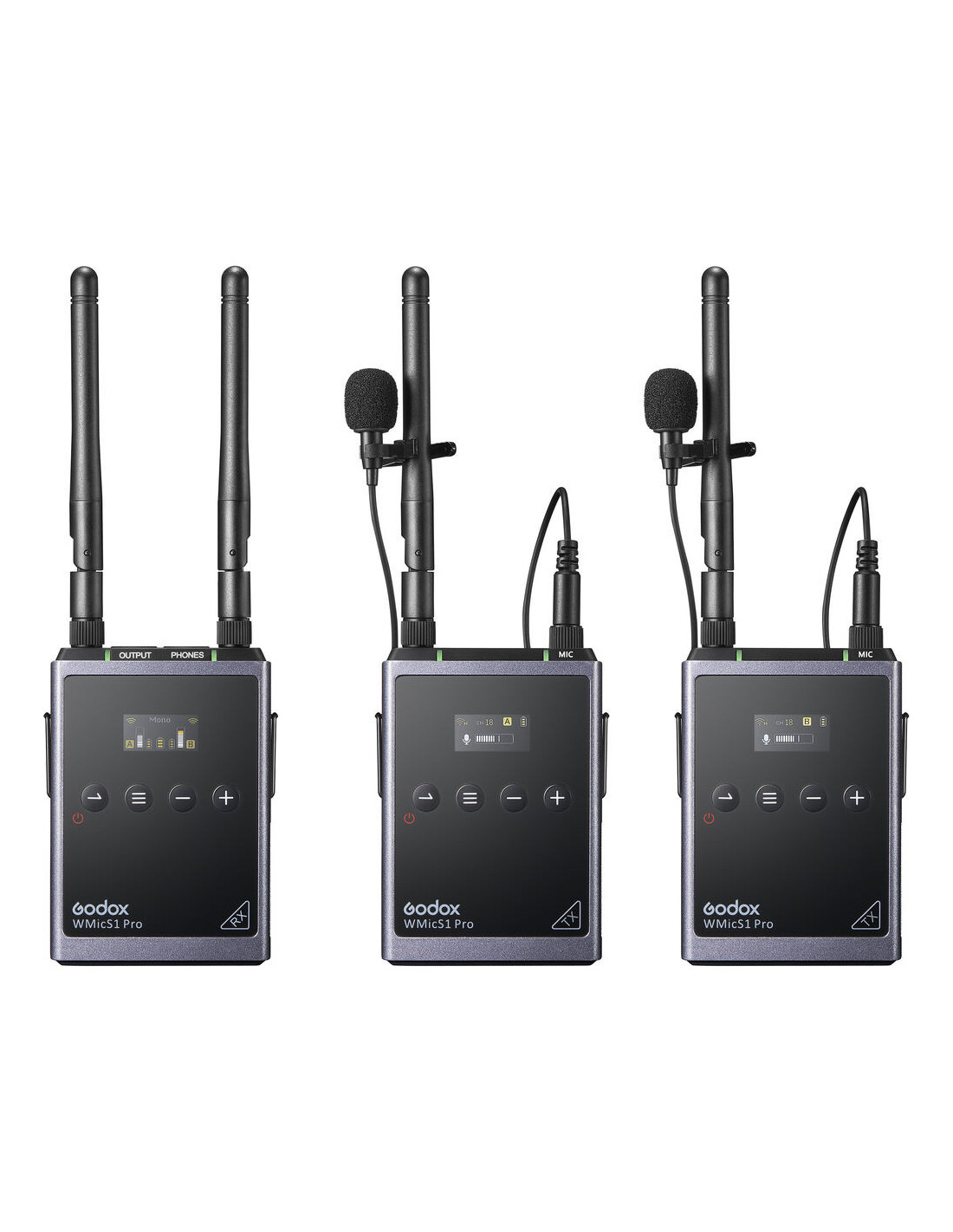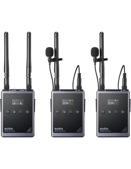 WMicS1 Pro is a metal construction dual channel wireless lav mic system whose long transmission distance brings more flexibility to creations. As an evolution from the original S1 system, the S1 Pro adds more features to benefit your production. It continues the portability and discreet look as a pocket sized unit while upgrading the housing, antenna and display, providing a satisfying experience for live streaming, podcasting, lecture, interview, conference and other content creations.