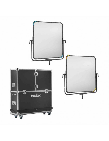 The Godox LiteFlow reflector 100cm Kit with Flight Case K1B consists of two versatile mirror like reflector panels with different diffusion strengths, mounted on two durable yoke frames. The set sits a durable and sturdy flight case.