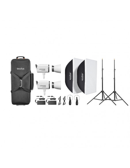 The Godox Litemons LA150R RGB LED Video Light 2 light kit consists of a set of two LED video lights with softboxes and lamp stands. A complete set that lets you get started right away.